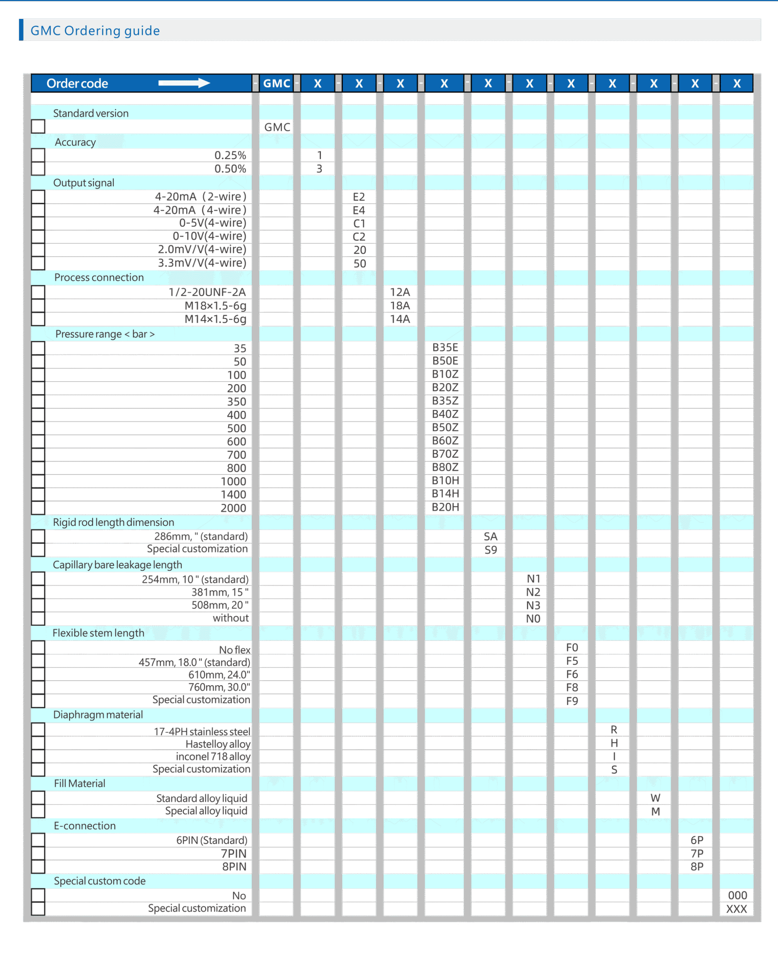 Measuring range 0 ~ 2000bar