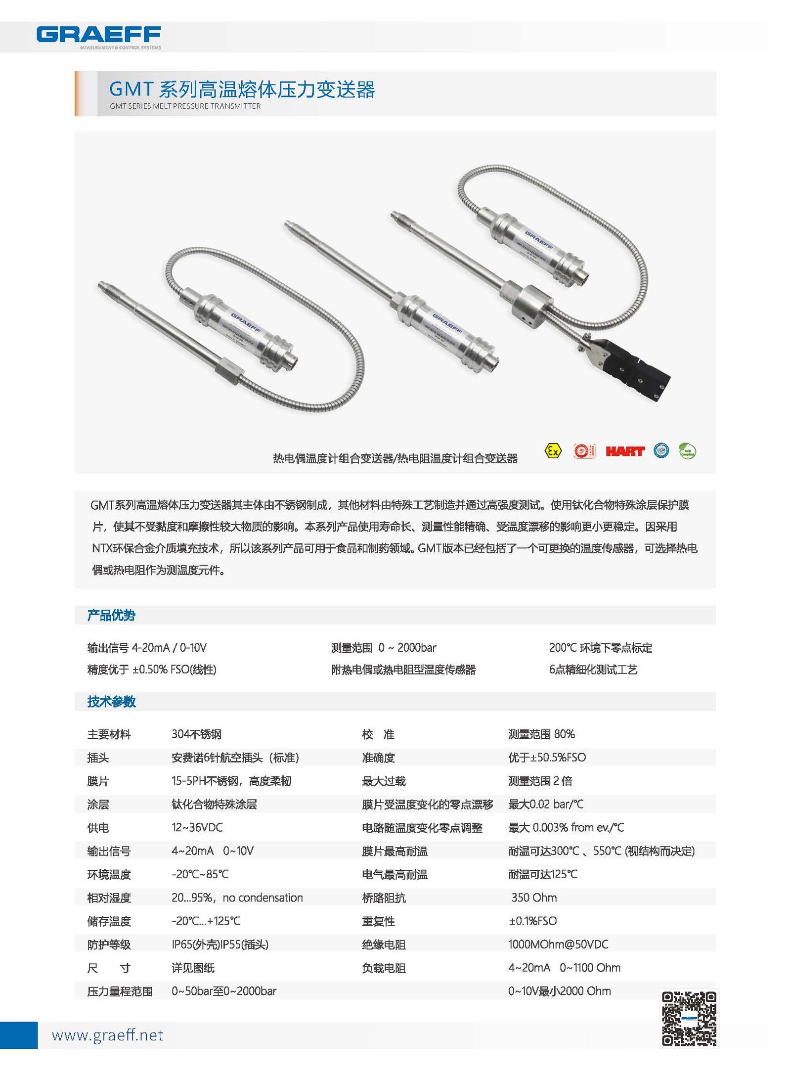 Graeff의 녹색 충진 GMT 시리즈 고온 용융 압력 트랜스미터는 긴 수명, 고품질 소재, 정밀한 측정 성능, 식품 등급의 전달 매체가 특징입니다.