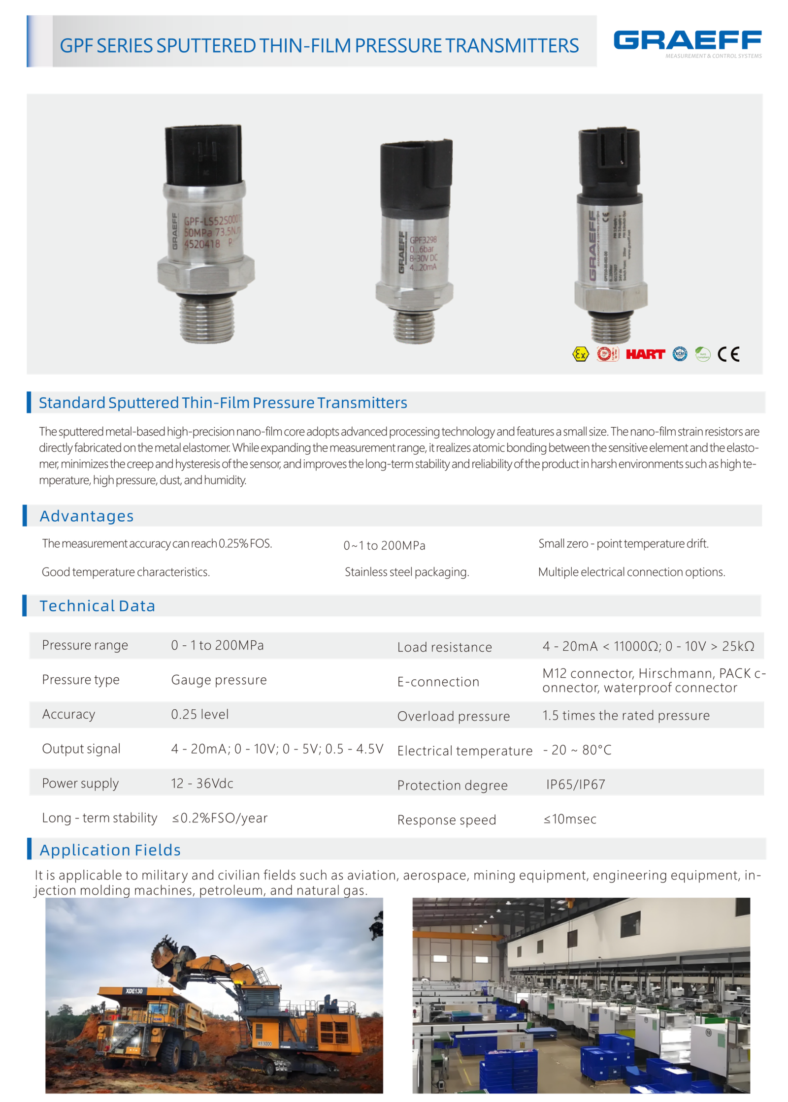 GPF SERIES SPUTTERED THIN-FILM PRESSURE TRANSMITTERS