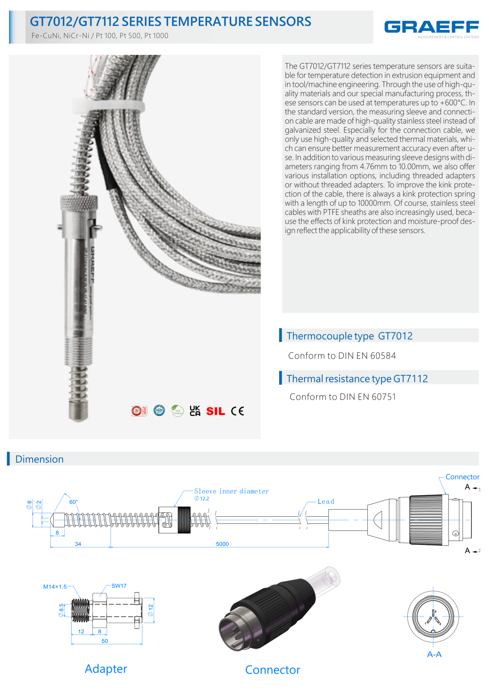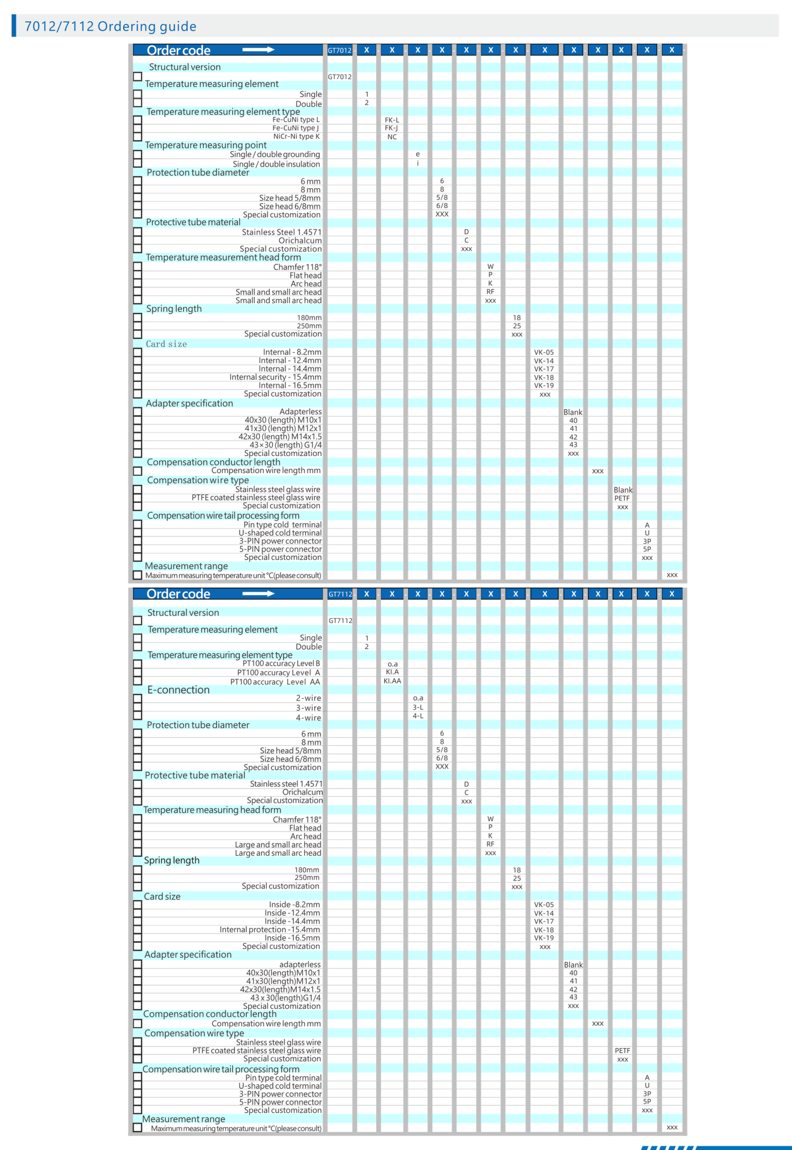 - 7012/7112 시리즈 온도 센서는 압출 장비 및 공작기계 분야의 온도 감지에 적합합니다.